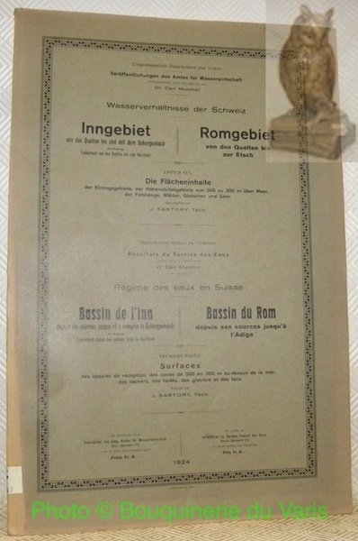 Wasserverhältnisse der Schweiz.Inngebiet von den Quellen bis und mit Schergenbach. Anhand: Fimberbach von Quellen bis zum Vesilbach. Romgebient von den Quellen bis zur Etsch. Erster Teil. Die Flächeninhalte der Einzugsgebiete, der Höhenstufengebiete von 300 zu 300 m über Meer, der Felshänge, Wälder, Gletscher und Seen. Régime des eaux en Suisse. Bassin de l’Inn. Bassin du Rom. Première partie.