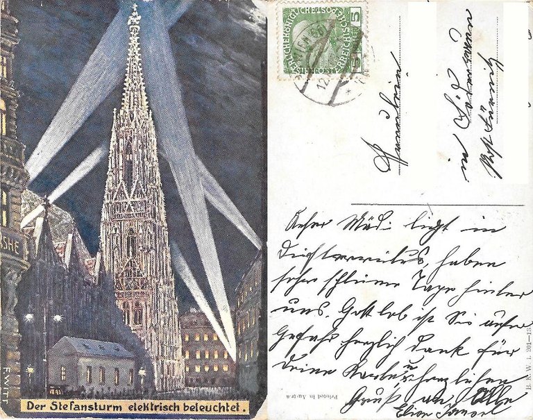 Wien, der Stefansturm elektrisch beleuchtet. Viaggiata 1908