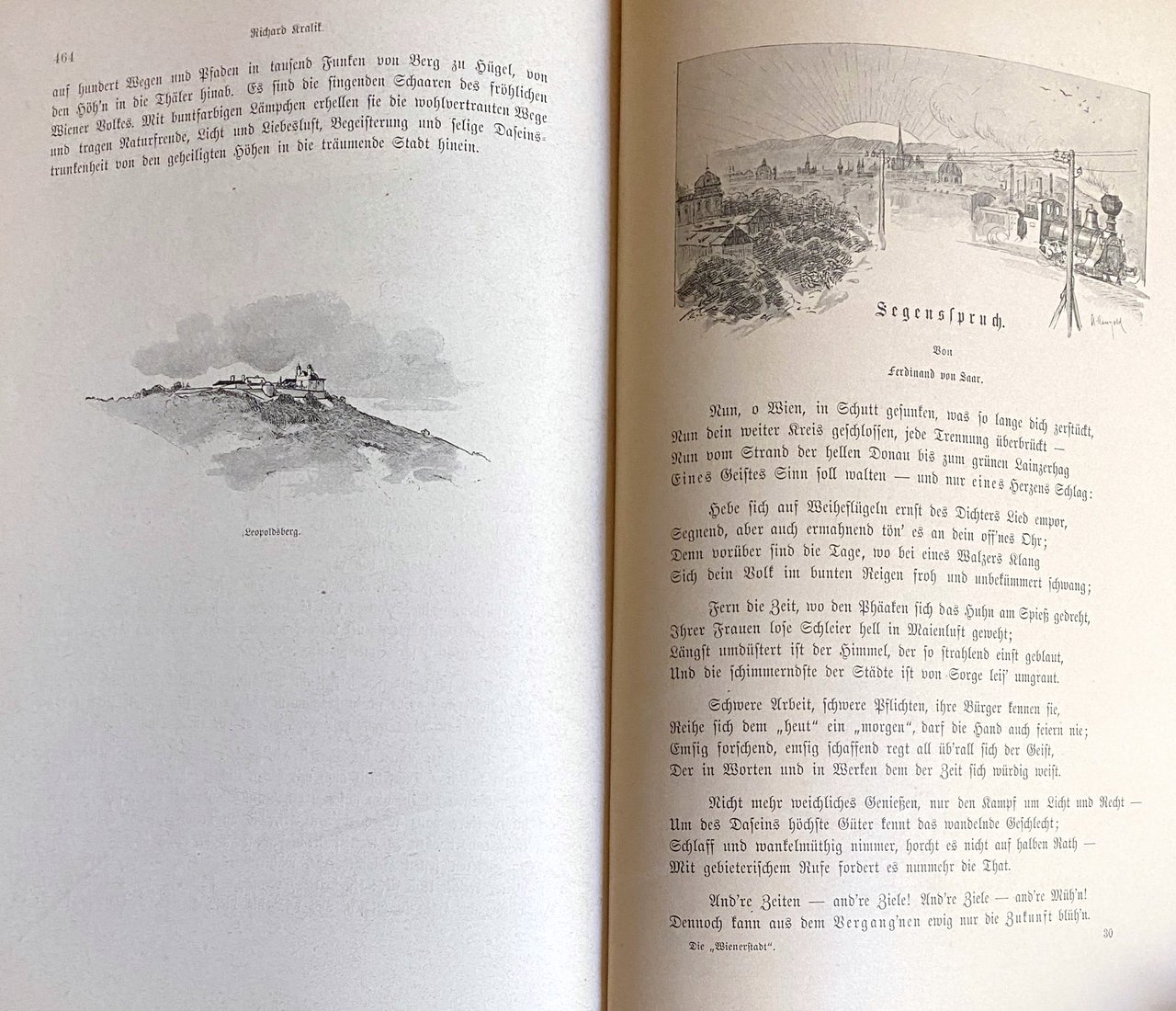 Il libro descrive Vienna come cuore e ornamento dell'Impero, una città in cui natura e storia si fondono armoniosamente. Dalla vista dal Kahlenberg sulla valle del Danubio fino all'emozione del ritorno e alla visione del Duomo di Santo Stefano, Vienna è presentata come simbolo di autentico amore per la patria. Questo sentimento non è semplice patriottismo locale, ma fondamento di un più ampio amore nazionale.