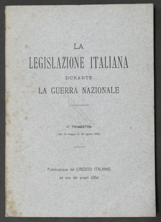 La Legislazione Italiana durante la Guerra Nazionale - V°, Trimestre -(dal 20 maggio al 20 agosto 1916) - ed. 1916
