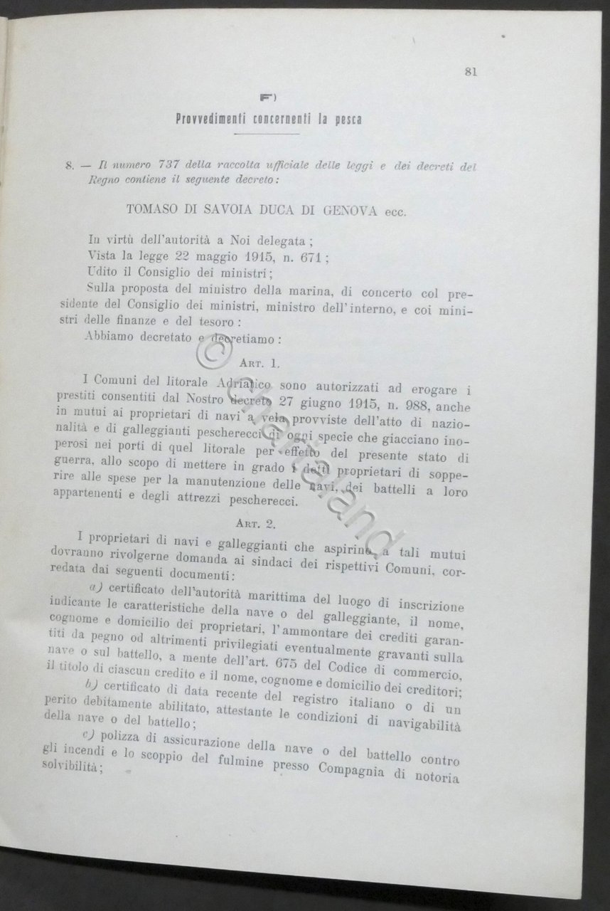 WWI - La Legislazione Italiana durante la Guerra Nazionale - V° Trimestre - 1916