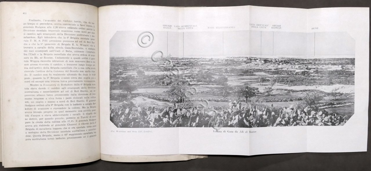 Le operazioni militari in Egitto e Palestina dall'apertura delle ostilità con la Germania fino al giugno 1917 - Relazione ufficiale inglese sulla grande guerra in base ai documenti ufficiali e sotto la direzione dell'Ufficio storico del Comitato per la difesa imperiale - Compilato dal Ten. Gen. Sir Giorgio Macmunn e dal capitano Cirillo Falls ; tradotto a cura dell'ufficio storico dello stato maggiore italiano - ed. 1937 Volume I - Narrazione e allegati - Pag. 585, con 6 tavole ripiegate Volume I bis - Carte e schizzi - Cartelletta contenente 15 carte geografiche, 18 schizzi, un diagramma e l'indice - ed. 1937 Copertina morbida - Testo in italiano. Condizioni generali molto buone.