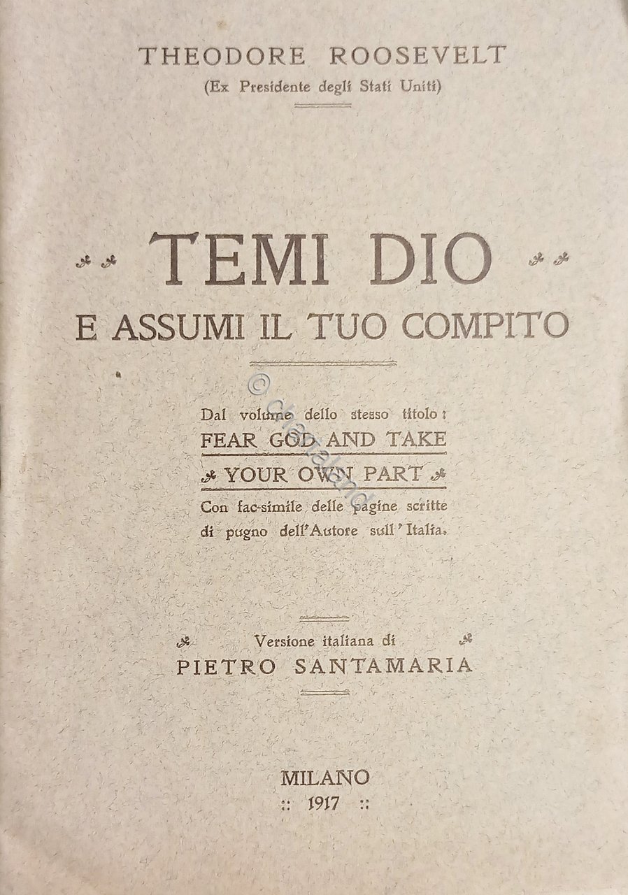 WWI - Th. Roosevelt - Temi Dio e assumi il tuo compito - ed. 1917