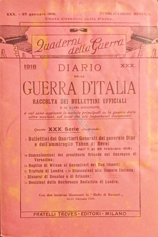 Diario della Guerra d'Italia - Raccolta dei Bullettini Ufficiali N. 98 - 1919 Testo in lingua italiana. Pagine 100 ca. Condizioni molto buone.