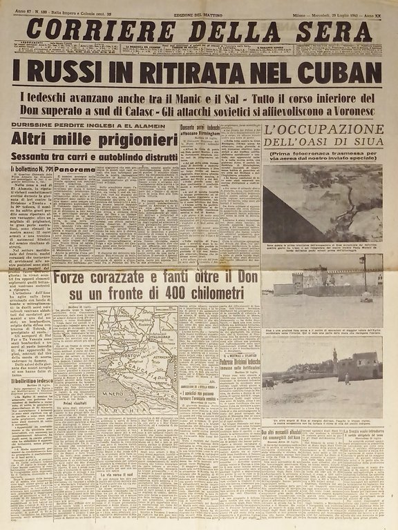 WWII - Corriere della Sera N. 180 - 1942 Russi in ritirata nel Cuban