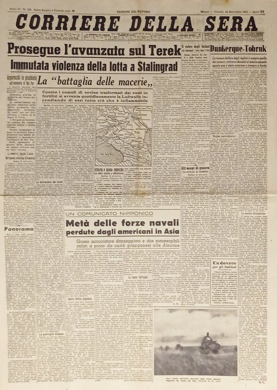 WWII - Corriere della Sera N. 228 - 1942 Prosegue l'avanzata sul Terek