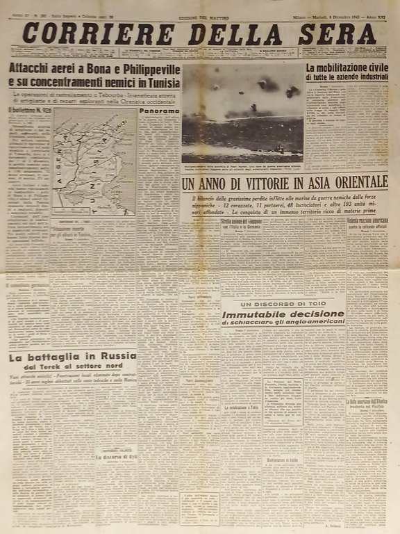 WWII - Corriere della Sera N. 292 - 1942 Attacchi aerei a Bona e Philippeville