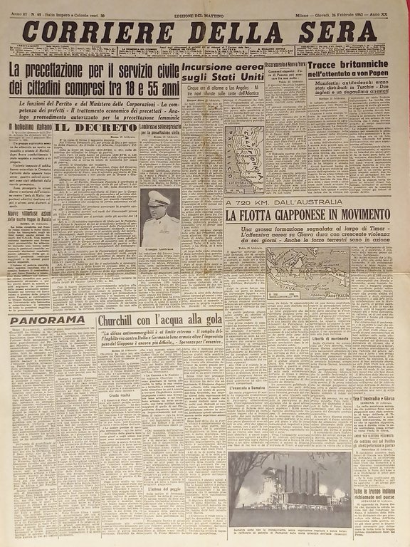 WWII - Corriere della Sera N. 49 - 1942 La flotta giapponese in movimento