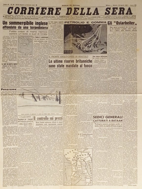 WWII - Corriere della Sera N. 93 - 1942 Il Fronte Anglo-Cinese