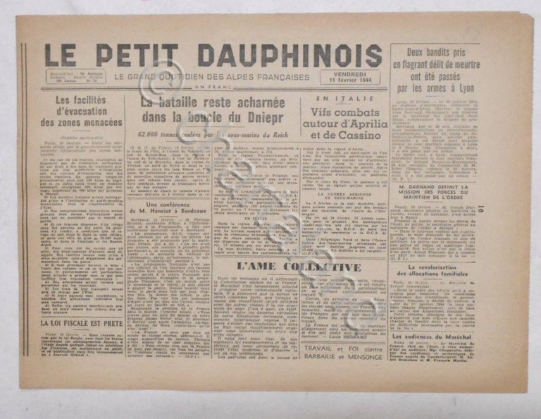 WWII Giornale - Le Petit Dauphinois N. 35 - 1944 Quotidien des Alpes Francaises