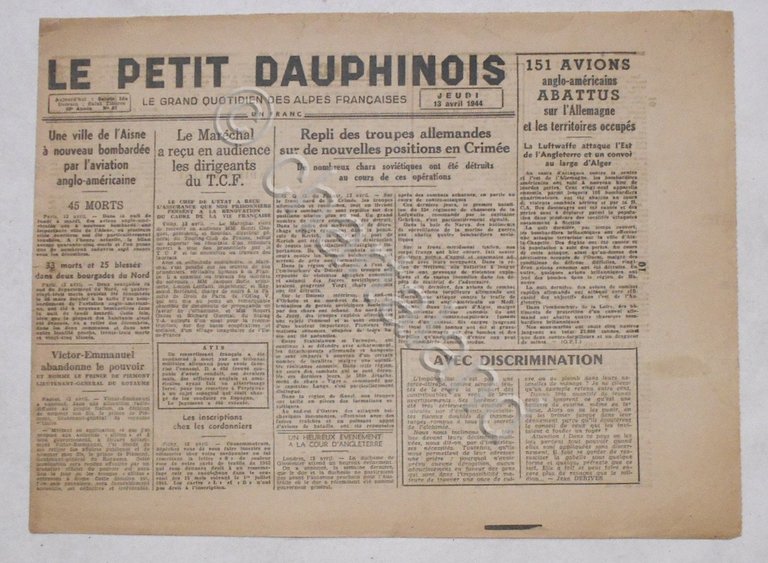 WWII Giornale - Le Petit Dauphinois N. 87 - 1944 Quotidien des Alpes Francaises