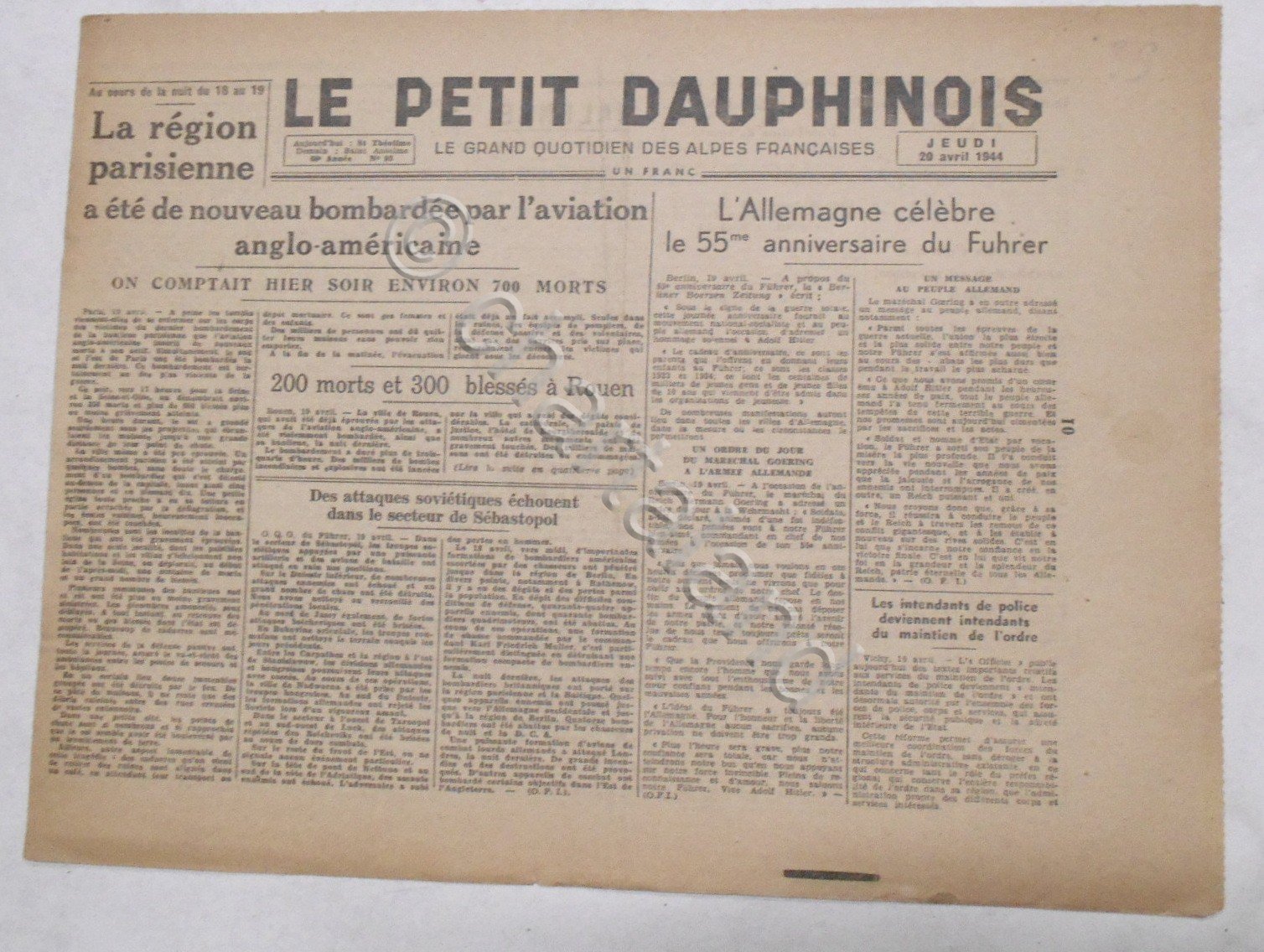 WWII Giornale - Le Petit Dauphinois N. 93 - 1944 Quotidien des Alpes Francaises