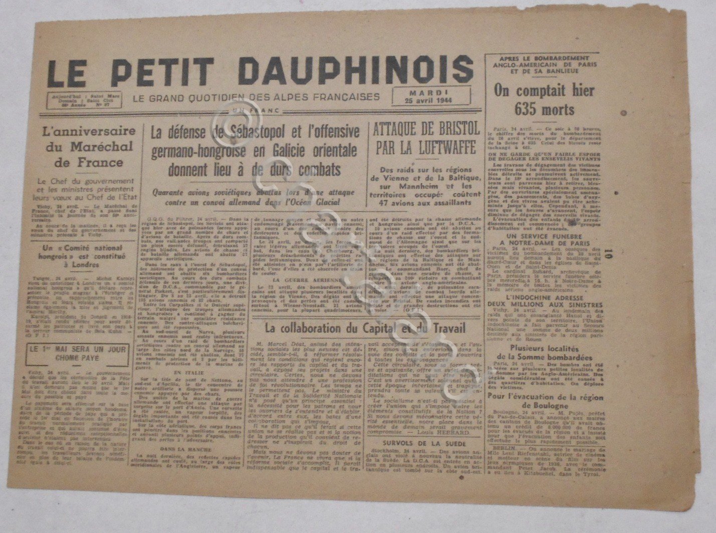 WWII Giornale - Le Petit Dauphinois N. 97 - 1944 Quotidien des Alpes Francaises