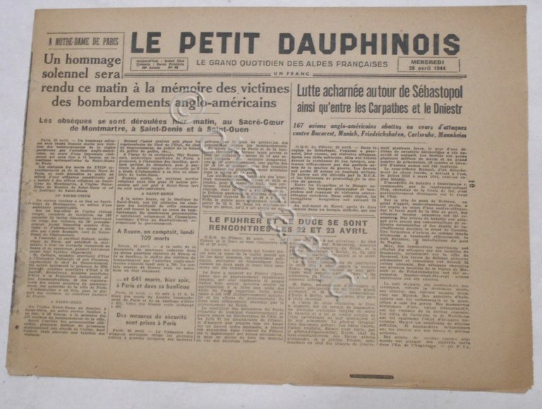 WWII Giornale - Le Petit Dauphinois N. 98 - 1944 Quotidien des Alpes Francaises
