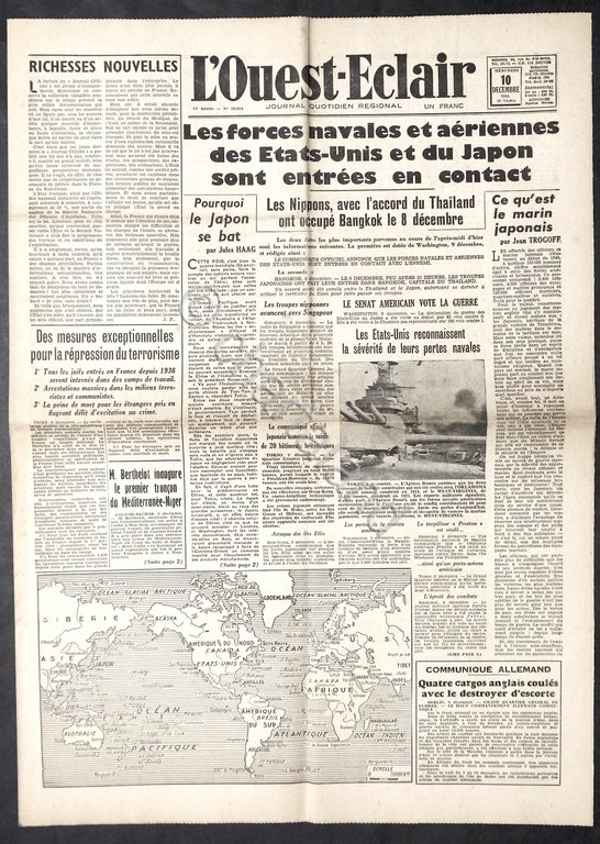 WWII Giornale Francia - L' Ouest-Eclair - N. 16414 - 10 dicembre 1941