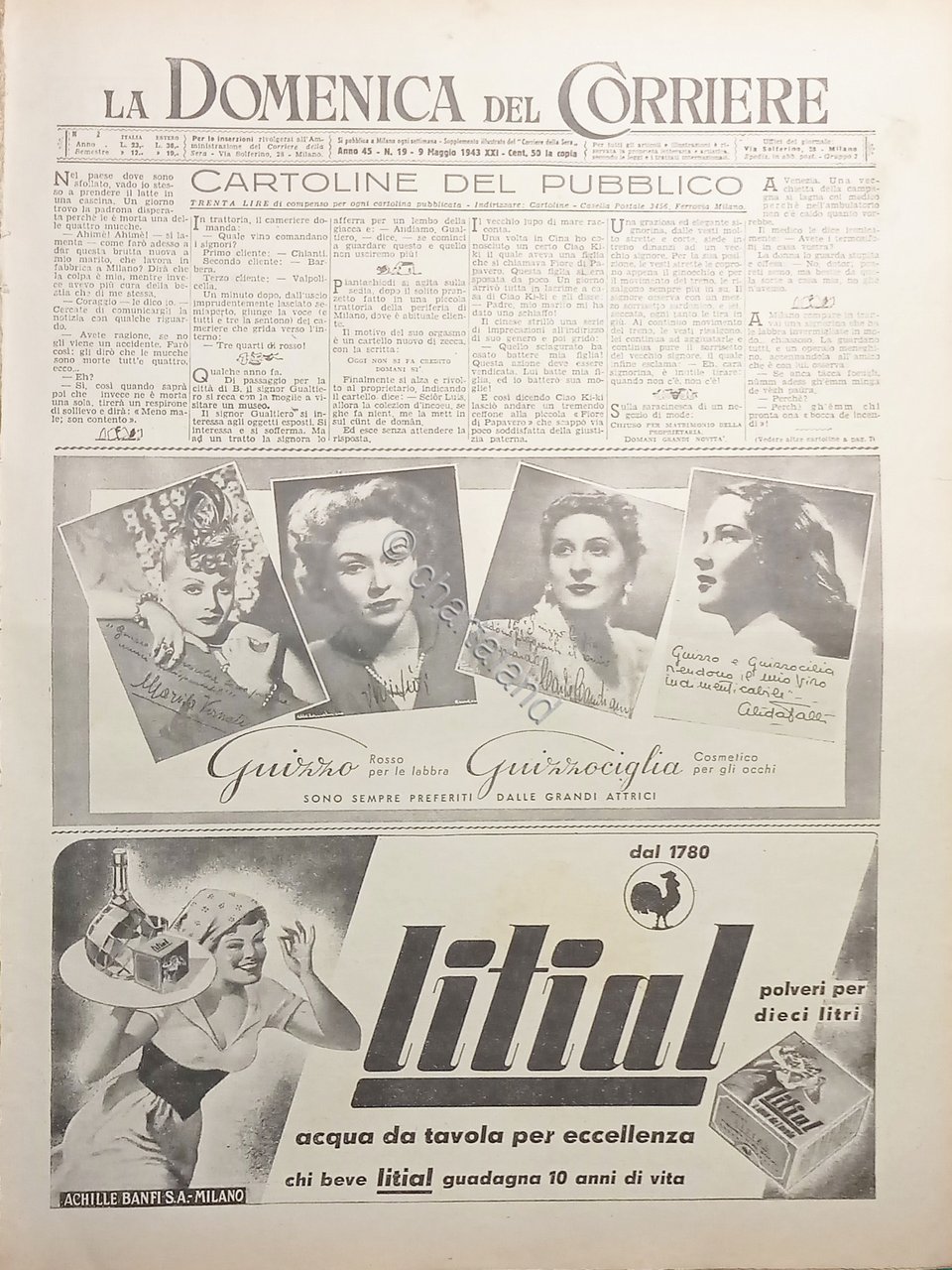 Supplemento illustrato del Corriere della Sera N. 19 - 1943 Testo in lingua italiana. Pag. 8 con illustrazioni Condizioni molto buone