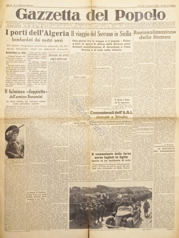 WWII Quotidiano - Gazzetta del Popolo N. 6 - 1943 Porti dell'Algeria bombardati