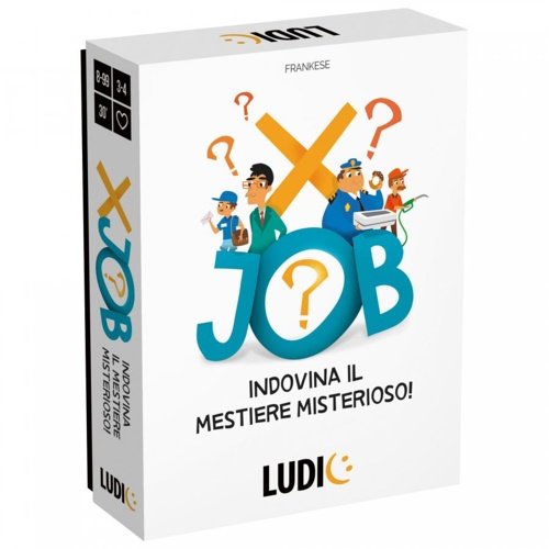 X-Job. Indovina il mestiere misterioso! Fornaio, parrucchiera, blogger, speleologo. In questo divertente party-game l’obiettivo è far indovinare il mestiere misterioso. Il segreto per vincere? Non bisogna mai essere troppo espliciti! Contenuto della Scatola: 40 Cartine-X Job; 1 spinner; 4 lavagnette; 4 pennarelli cancellabili; 1 scheda segnapunti; Regolamento.