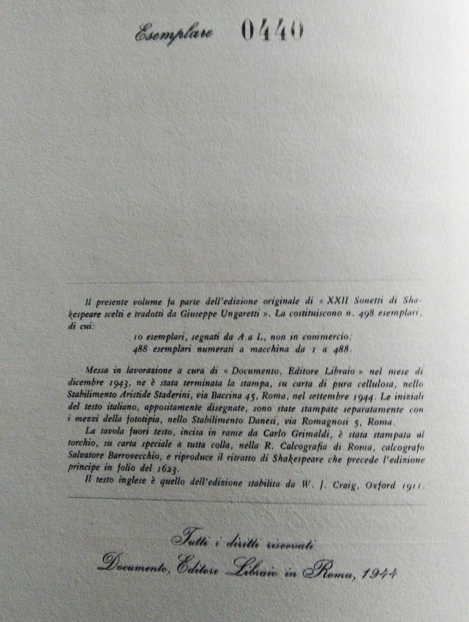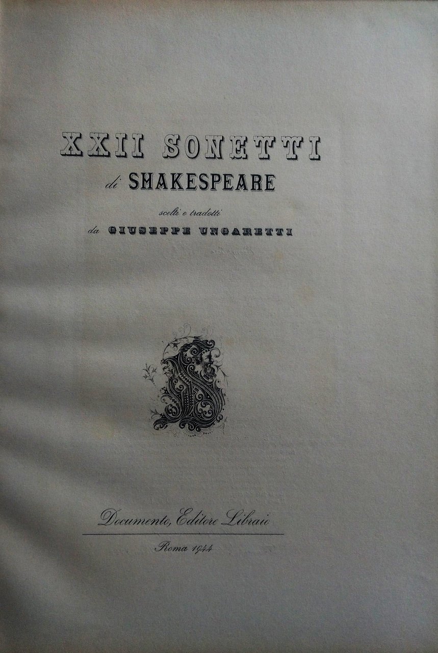 XXII sonetti di Shakespeare scelti e tradotti da Giuseppe Ungaretti.