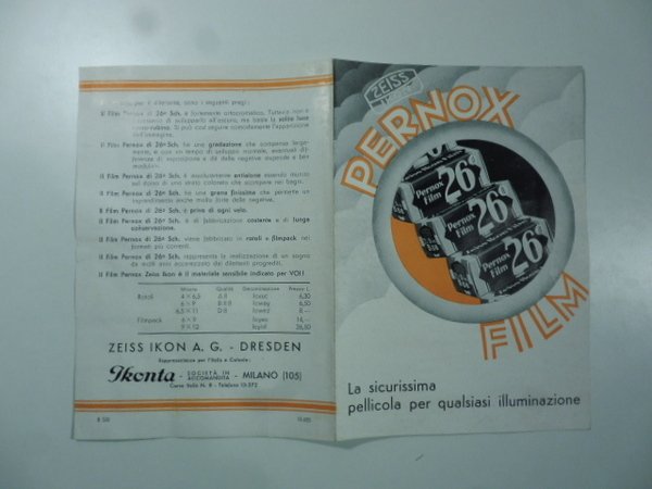 Zeiss Ikon. Pernox film. La sicurissima pellicola per qualsiasi illuminazione. (Pieghevole pubblicitario)
