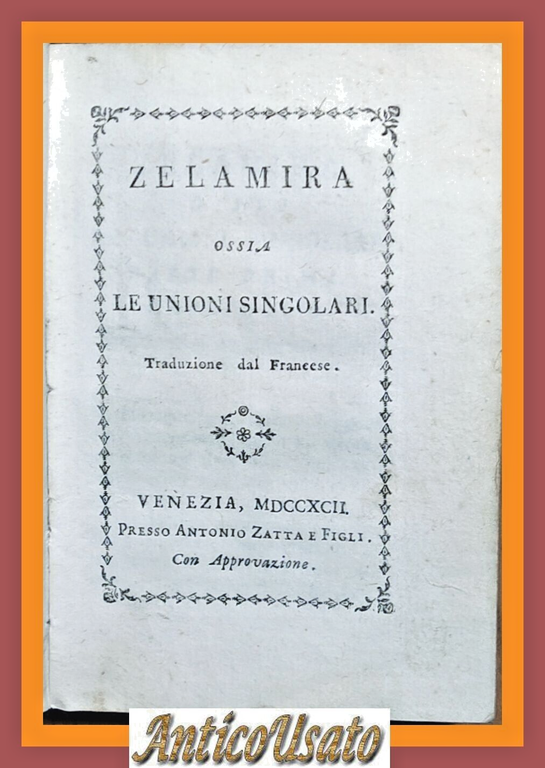 ZELAMIRA ossia Le unioni singolari 1792 Antonio Zatta biblioteca piacevole Libro