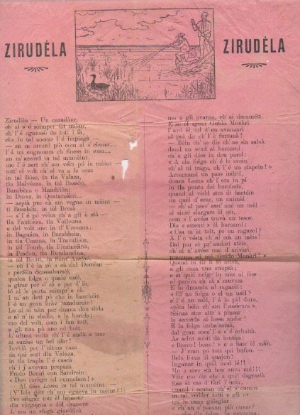 EPHEMERANon comune foglio volante, stampa una ‘zirudella’—tipico componimento umoristico dialettale del bolognese— in tema venatorio dell’autore noto come «Notaio Amaduzzi».