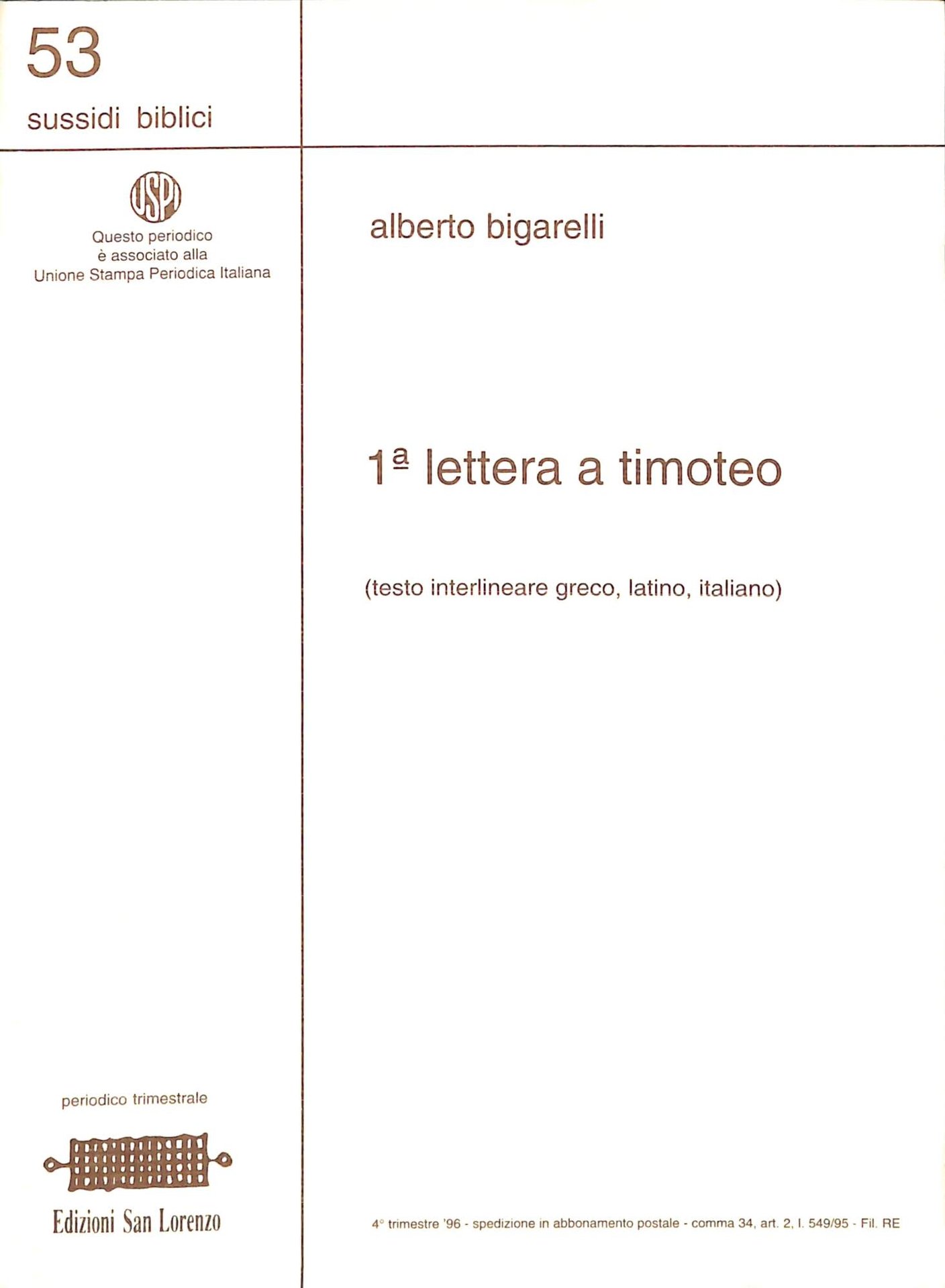 1. lettera a Timoteo : testo interlineare greco, latino, italiano | Libri antichi e moderni | Bigarelli, Alberto