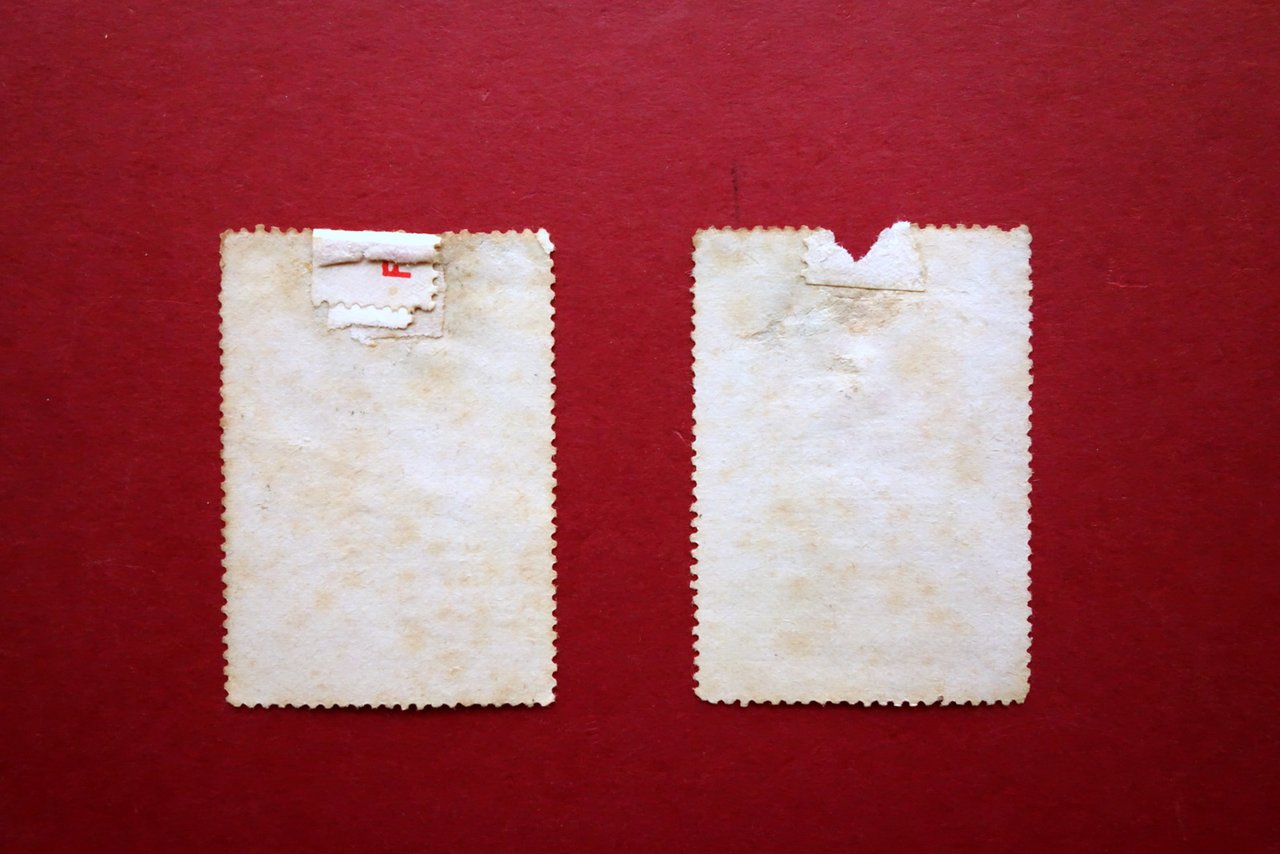 2 erinnofili, Italia! sicura ne'tuoi confini, sii indipendente coi tuoi prodotti" - "Italiani! per la grandezza della patria preferite l'industria nazionale" - due erinnofili con bella grafica a colori anni '30 S. d. ma anni '30 del Novecento; due erinnofili con bella grafica a colori. Cm 5,5x3,5. Condizioni di conservazione Buone condizioni con tracce d'uso, al retro piccole tracce di precedente applicazione; margine superiore di un erinnofilo con una minima mancanza. Bella grafica a colori. SC03.D18546 N "