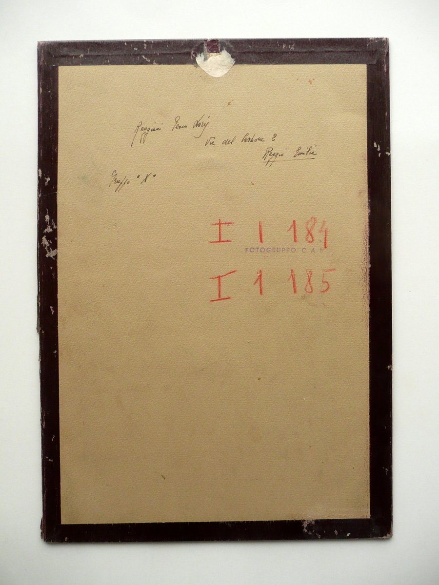 Due fotografie originali, Vita dei Campi in A. O." Due fotografie originali entro cornice d'epoca all'inglese S. d. (anni '30 del Novecento circa); due fotografie originali in b/n inserite entro cornice d'epoca all'inglese; a un margine est. del supporto vi è l'annotazione a mano "vita dei campi in A.O." (vedi foto); retro con qualche annotazione a mano e con timbro del Fotogruppo C.A.I. (probabilmente di Reggio Emilia, vedi foto). Cm 34,5x24 (cornice). Condizioni di conservazione Fotografie ben conservate con leggere tracce del tempo; margini frastagliati. Cornice all'inglese anch'essa ben conservata con alcune minime abrasioni, qualche piccola mancanza e strappetto ai margini e agli angoli. SC03.D10579 N "