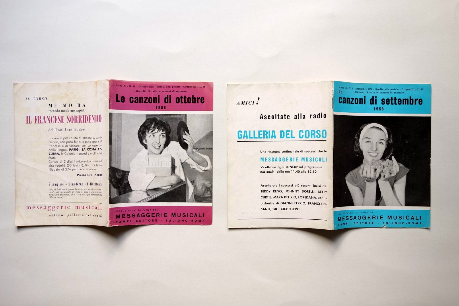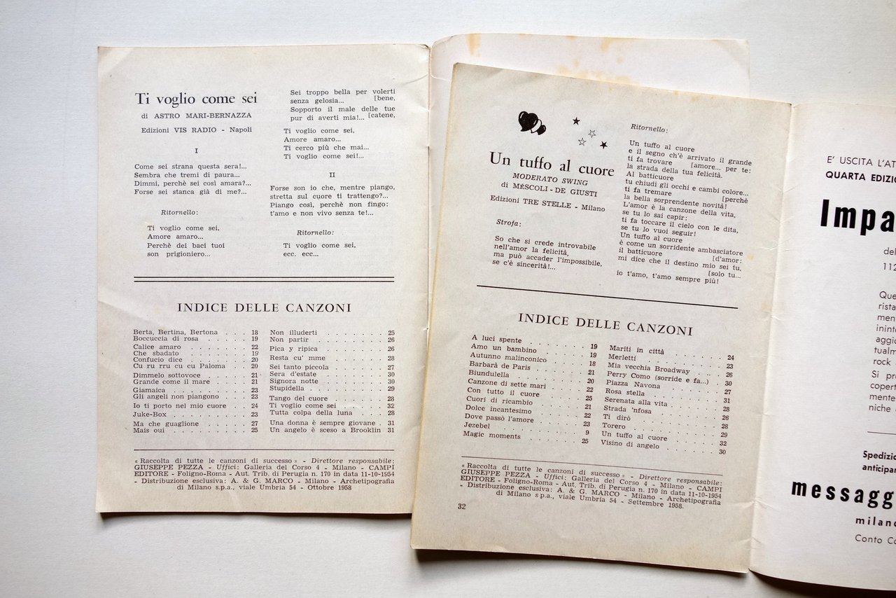 2 Libretti Canzoni di Settembre Ottobre 1958 Messaggerie Musicali Campi Foligno