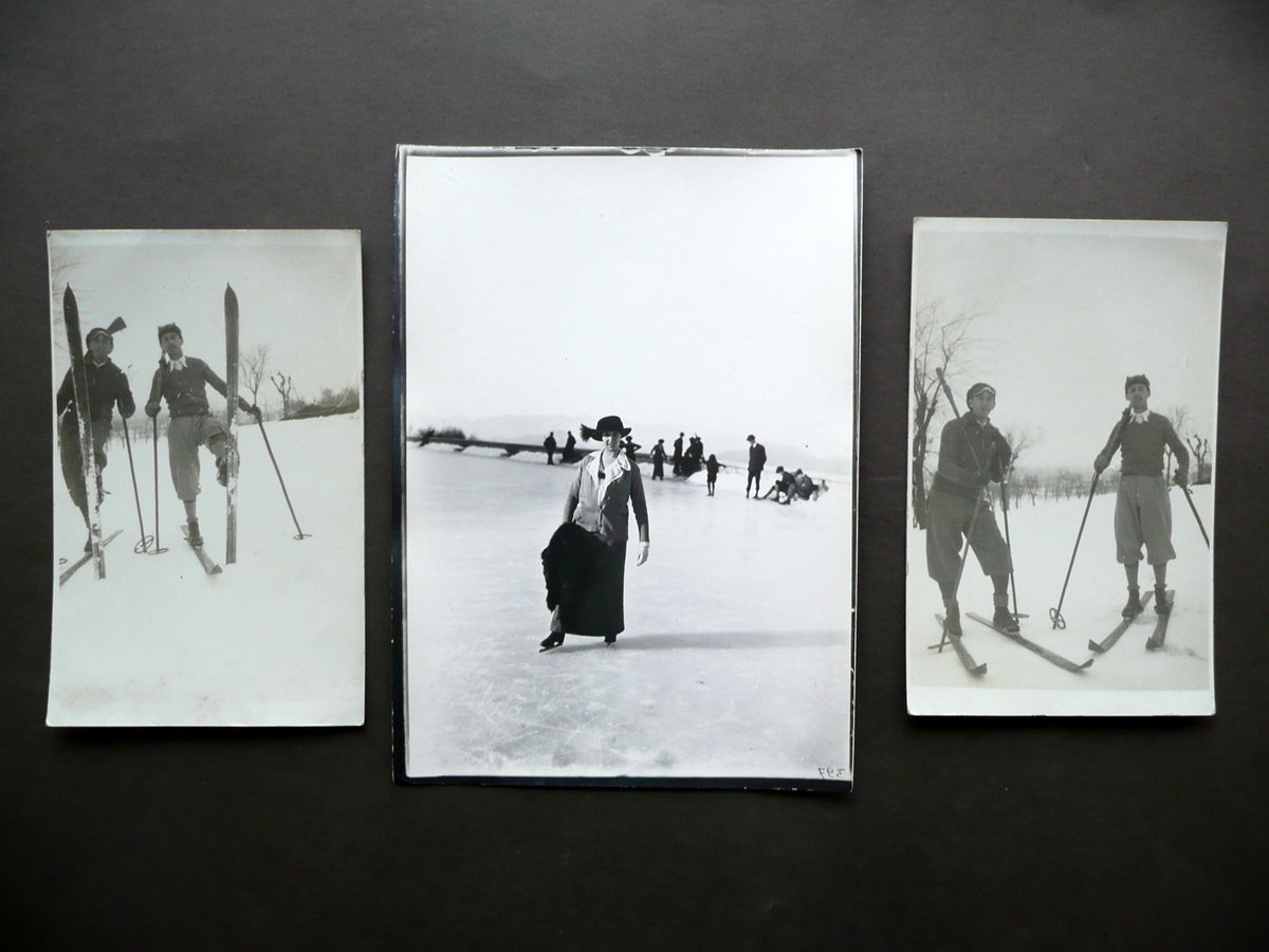 3 Fotografie Originali Sport Invernali Sci Pattinaggio su Ghiaccio Primo '900 | Libri antichi e moderni |