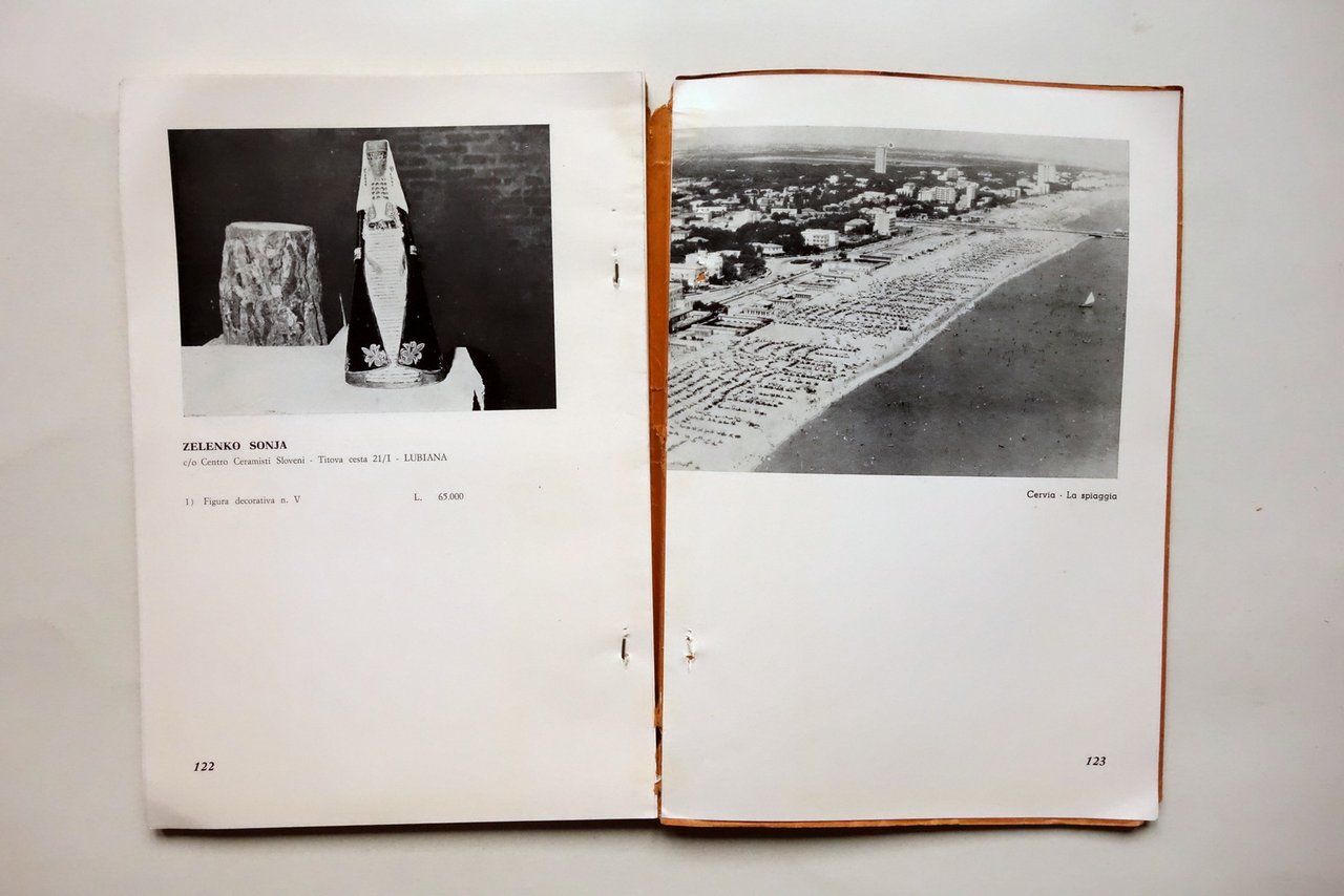Catalogo, Città di Cervia 6° Concorso Ceramica d'Arte 1968 Monumentale Ex Magazzino del Sale - Viale Oriani dal 21 luglio all'8 settembre Stampa Saporetti, Cervia 1968; cm 24,5x17; pp. 124 con numerose ill. in b/n; brossura ed. Condizioni di conservazione Condizioni più che discrete con tracce d'uso, coperta con qualche minuscola macchietta, minime mancanze a tre angoli.; dorso con qualche piccolo strappetto. Interni buoni con lieve accenno di piega all'angolo inferiore delle pagine; margine interno delle pp. 122-123 aperto ma interni compatti (vedi foto). SETT149.L24756 N