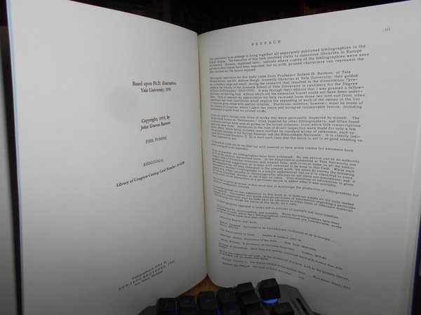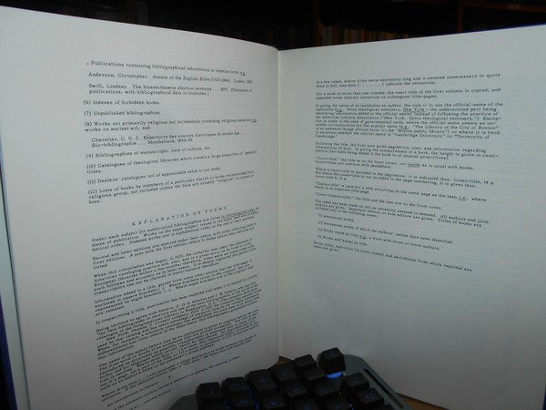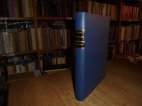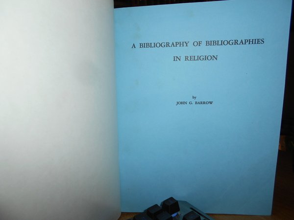 by JOHN G. BARROW. U.S.A., Edwards Brothers, 1955. A Bibliography of Bibliographies in Religion. In-4°, tela bleu con titolo in oro entro tassello al dorso, copertine originali conservate. xi, 489 pp. Perfetto esemplare in legatura anni '70 con le brossure originali conservate. Uff. E - V - 6