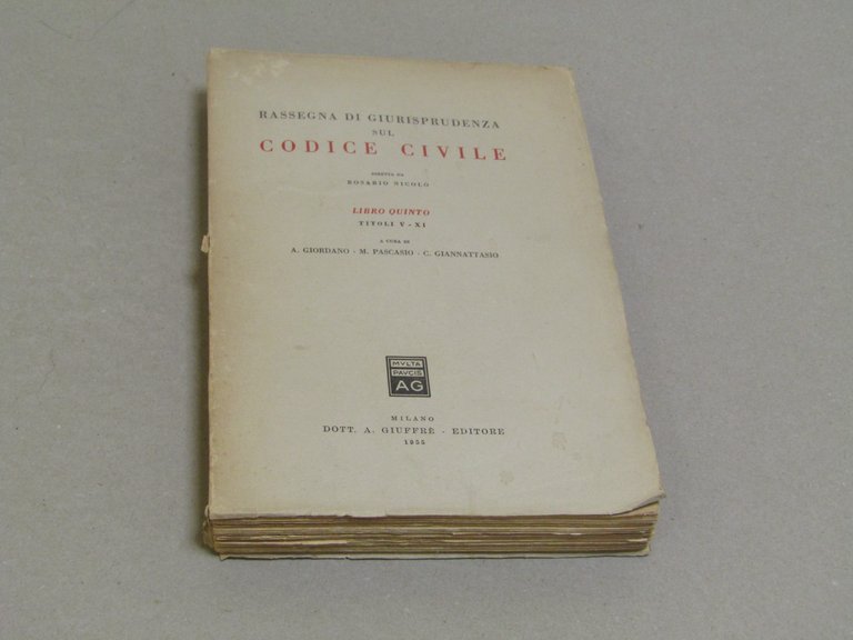 a cura di A. Giordano, M. Pascasio e C. Giannattasio. Rassegna di giurisprudenza sul codice civile libro quinto. | Libri antichi e moderni | a cura di A. Giordano, M. Pascasio e C. Giannattasio