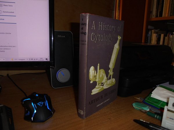 ARTHUR HUGHES. London and New York, Abelard-Schuman, 1959. A History of Cytology. In-8°, tela rossa con fregi e titolo in oro sul dorso, sovracopertina. x, 158 pp. con numerose illustrazioni in 12 tavole f.t. Ottimo esemplare. Uff. C - IV - 6