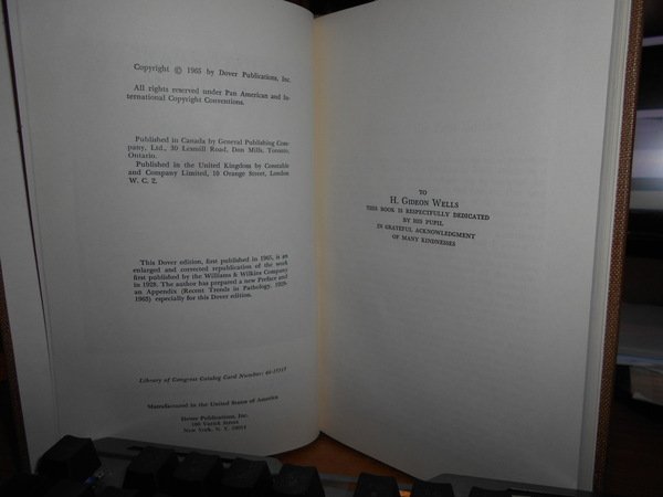by ESMOND R. LONG. New York, Dover Publications, 1965. A History of PATHOLOGY. In-8° piccolo, tela con titolo in oro entro tassello al dorso. xviii, 199 pp. con XLIV tavole in nero fuori testo. Come nuovo. Uff. C - IV - 6