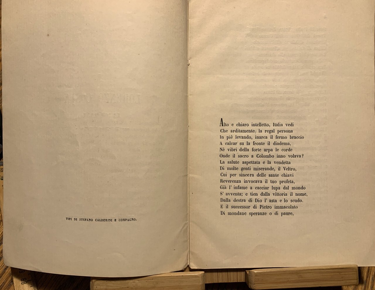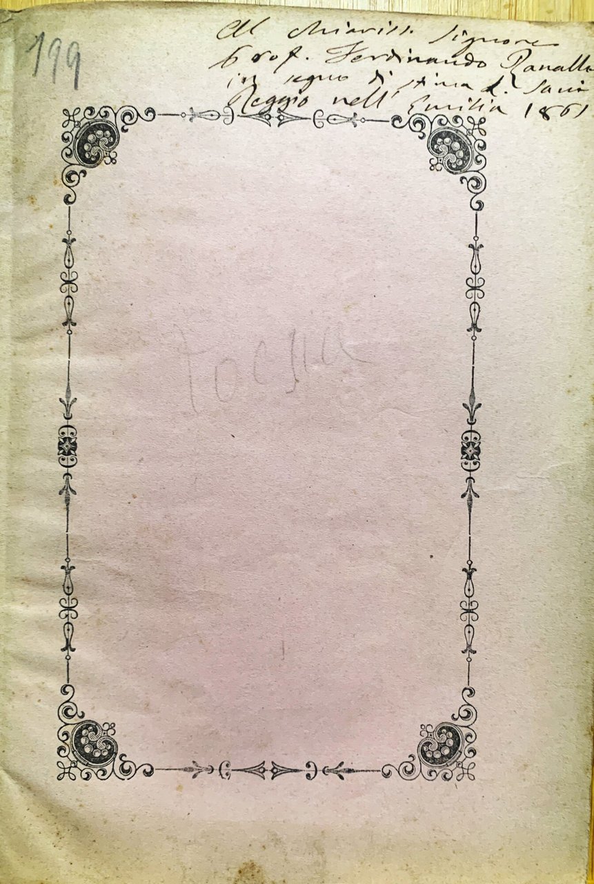 I ed.. VIII/ (2)+16+(2)/ brossura in carta muta rosa cipria con cornici rnate in nero. Dedica dell'a. ad inchiostro seppia al primo piatto della copertina. Stato buono (copertina con bruniture, gore e piccole fioriture - pagine brunite).