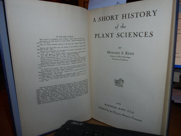 HOWARD, S. REED. Waltham, Mass., U.S.A., 1942. A SHORT HISTORY of the PLANT SCIENCES. In-8°, tela bleu edit. con titolo in oro al dorso. (x), 320 pp. con illustrazione nel testo ed alcune fuori testo. Ottimo esemplare. Uff. C - IV - 7