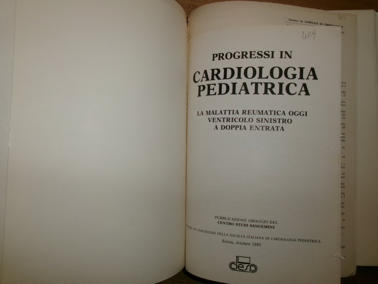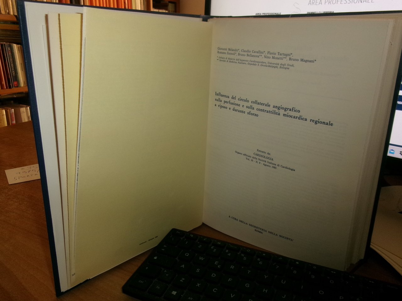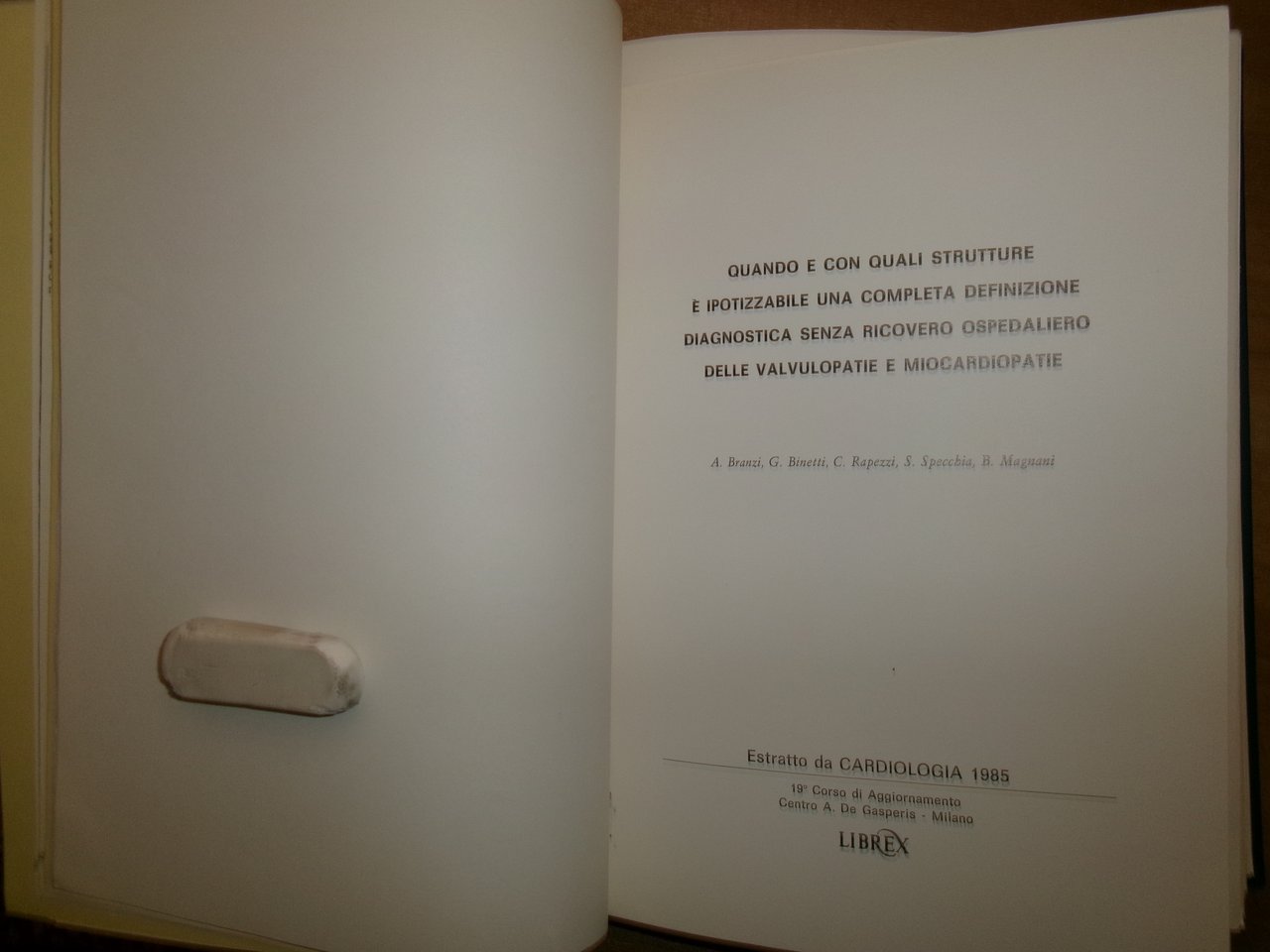 AA. VV. Istituto di Cardiologia Pubblicazioni Scientifiche 1985 - 1987. Raccolta di numerose opuscoli/estratti legati assieme in un volume in-8° grande, pelle con titolo in oro al dorso. Ottimo stato con testo italiano/inglese. Salon. sporta 5.