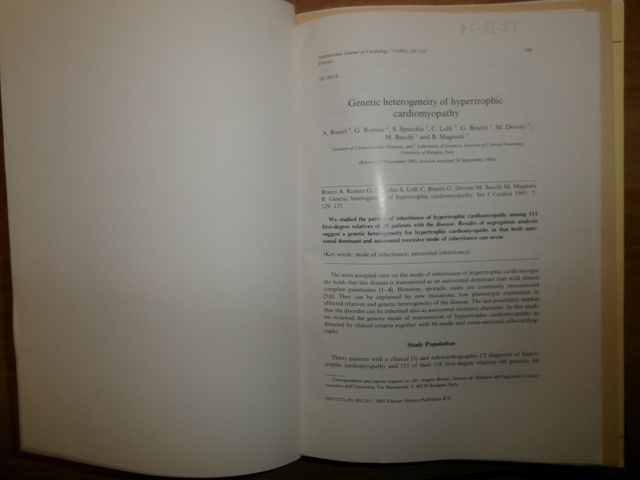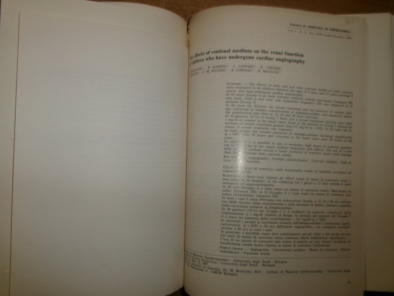 AA. VV. Istituto di Cardiologia Pubblicazioni Scientifiche 1985 - 1987