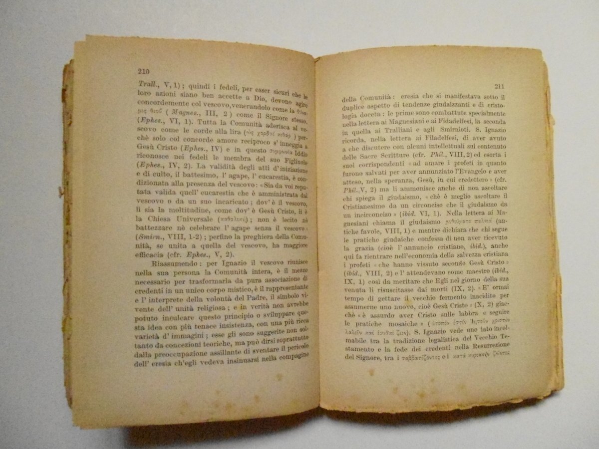 AA VV, Manuale Introduttivo Alla Storia del Cristianesimo Volume I Il Cristianesimo antico Parte I I primi tre secoli Franco Campitelli - Editore, Foligno, 1925. Cm. 19,5x13,5; pp. 440. Cartoncino edit. fig. marrone. Condizioni di conservazione Esemplare in buono stato di conservazione. Minime tracce d'uso con coperta con alcuni minimi taglietti e abrasioni al margine inferiore e destro. Piccole bruniture alle pagg. interne. Primo vol. Una bella xilografia di B. Disertori in copertina. SETT73.L20759G