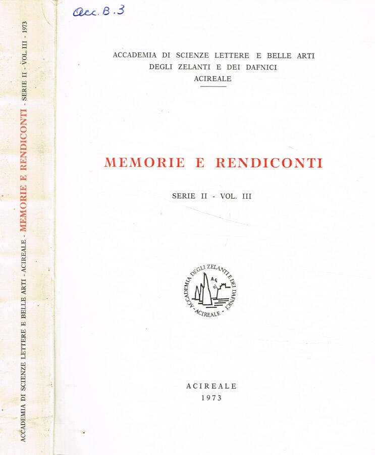 Accademia di scienze lettere e belle arti degli zelanti e dei dafnici. Memorie e rendiconti serie II- vol.III, 1973