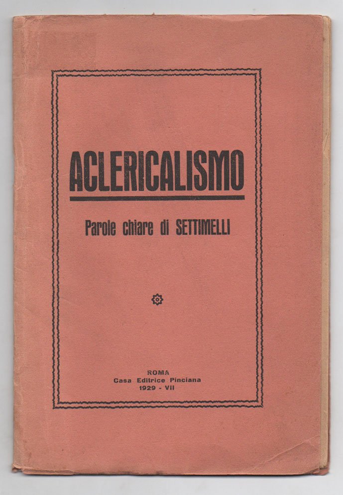 Aclericalismo. Parole chiare di Settimelli | Libri antichi e moderni | Settimelli, Emilio