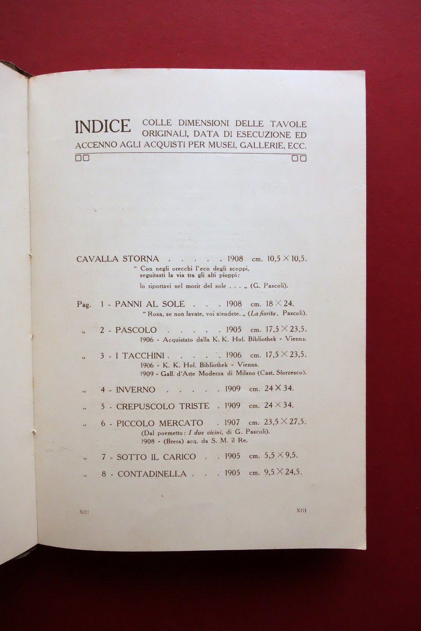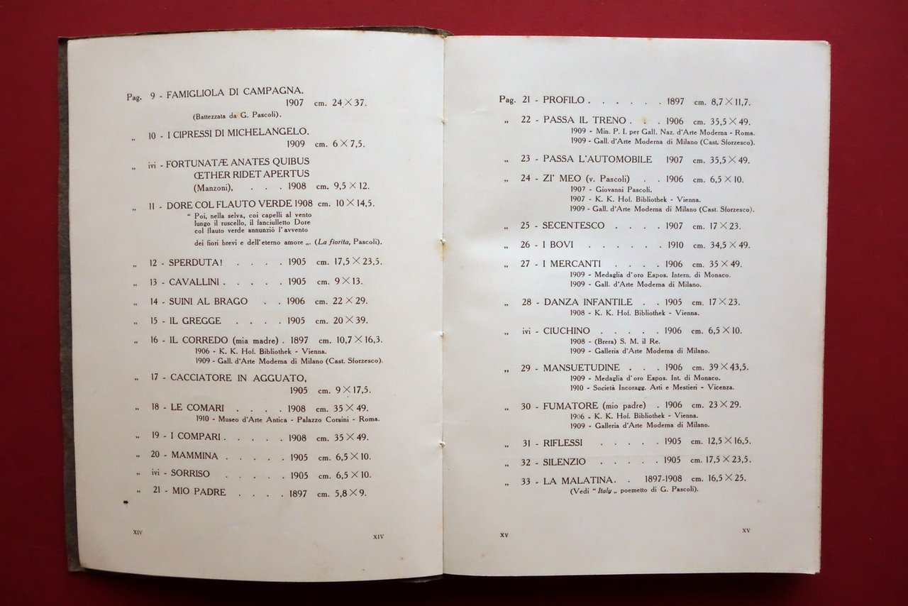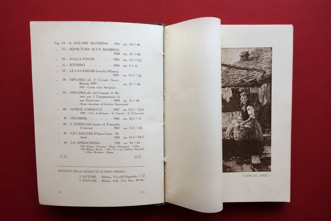 Catalogo, Acqueforti originali di Vico Viganò prefazione di Luca Beltrami E. Bonomi, Milano 1910; cm 17,5x12,5; pp. XXIV di testo più 44 belle tavv. in b/n o virate a vari colori fuori t., tutte protette da velina (qualche tavola è ripiegata; vedi foto); legatura ed. in cartoncino con una ill. applicata al piatto ant. Condizioni di conservazione Buone condizioni con leggere tracce d'uso; margini e angoli della coperta minimamente sgualciti. Interni buoni con alcune piccole bruniture alle prime e ultime pagine di testo; ultima pagina con tracce di pieghette all'angolo superiore. Tavole tutte molto ben conservate. Bel catalogo, riccamente illustrato. SETT158.L25090 N P