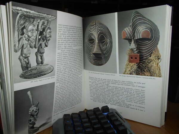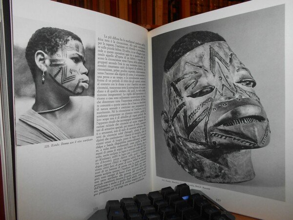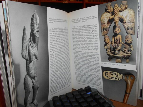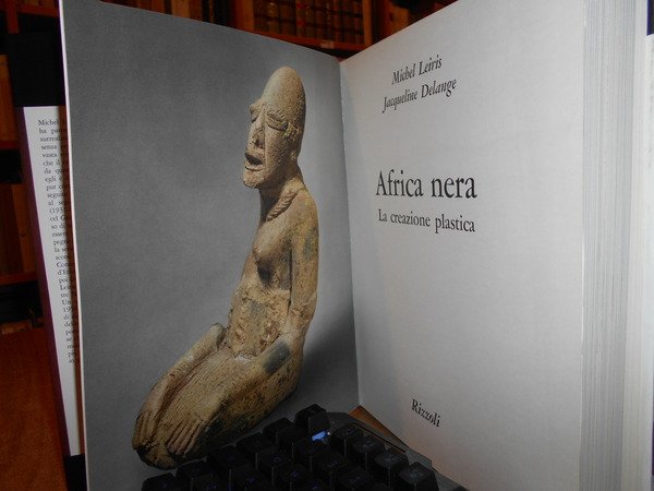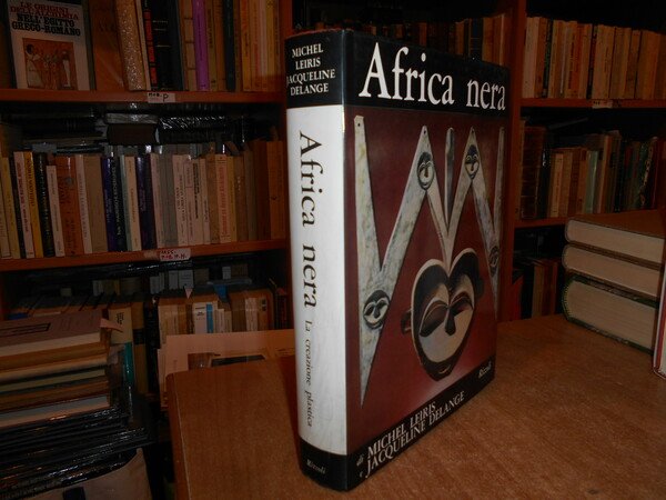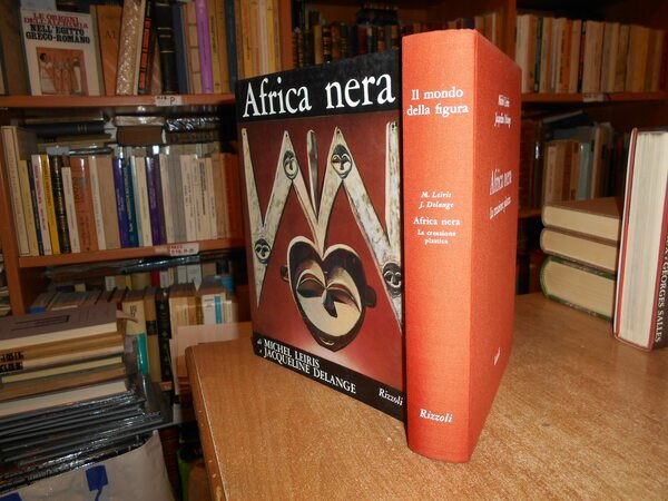 di MICHEL LEIRIS e JACQUELINE DELANGE. Milano, Rizzoli Editore, 1967. AFRICA nera la creazione plastica. In-4°, tela edit. arancione con titoli bianchi e sovracopertina ill. a col. x, 450 pp. con innumerevoli illustrazioni fotografiche a colori e in bianco e nero anche a piena pagina e in tavole ripiegate, in fine carte geografiche a colori. Ottimo esemplare. Uff. stanzetta mob. a sinistra