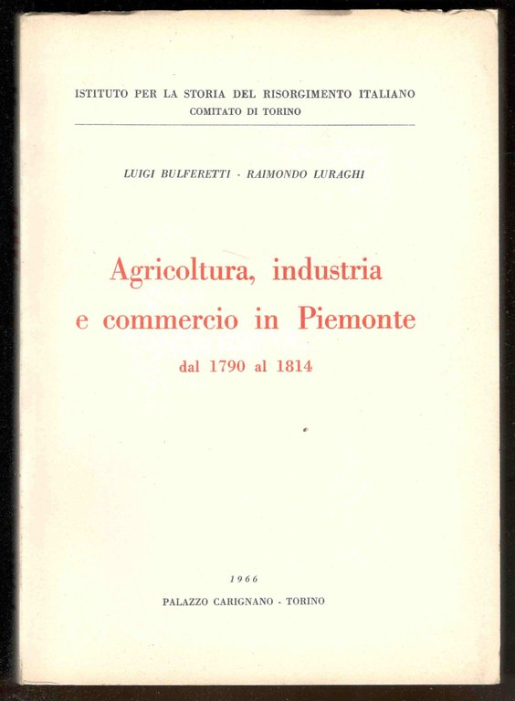 Agricoltura, industria e commercio in Piemonte dal 1790 al 1814 | Libri antichi e moderni | Bulferetti, Luigi - Luraghi, Raimondo