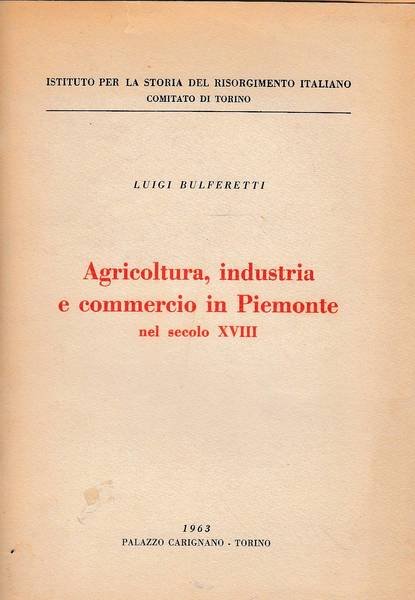 AGRICOLTURA, INDUSTRIA E COMMERCIO IN PIEMONTE nel secolo XVIII | Libri antichi e moderni | Luraghi Raimondo.
