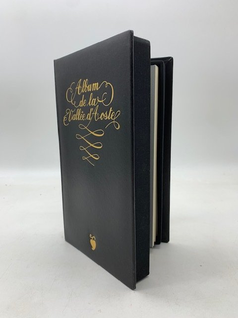 In 8, cm. 12 x 21, pp. 54 non numerate, con 12 illustrazioni  in bianco e nero di cui una ripiegata e una gande tavola, (cm. 47 x 63), non rilegata,  con 13 disegni che raffigurano le vedute principali della Valle d'Aosta, più volte ripiegata. Legatura editoriale  in similpelle grigia  con fregio intarsiato ai piatti. Cofanetto con apertura a libro in similpelle nero con titoli in oro al piatto a al dorso. Reprint tratto dall'opera originale.  Presentazione di Laura Aliprandi in doppia lingua italiano / francese. Di questa opera sono stati impressi 300 esemplari, il ns. n. 175 con firma autografa dell'editore.  In ottimo stato.