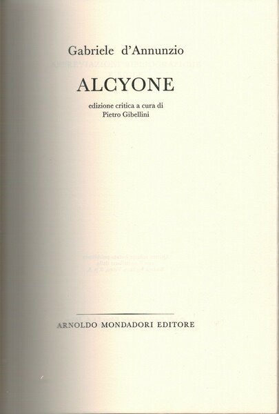 ALCYONE. Edizione critica a cura di Pietro Gibellini | Libri antichi e moderni | Gabriele D'Annunzio