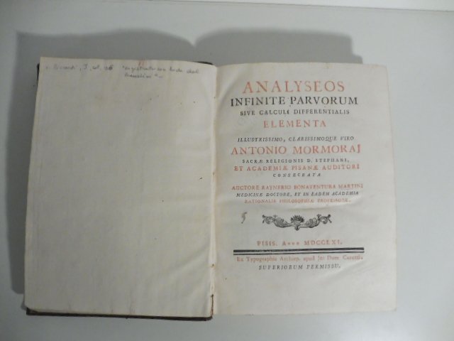 Analyseos infinite parvorum sive calculi differentialis elementa illustrissimo, clarissimoque viro Antonio Mormoraj. | Libri antichi e moderni | Martini Raineri Bonaventura
